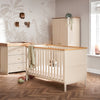 The Evie double wardrobe provides practical storage space with a double rail. The traditional finish, stunning natural wood and beautiful brass handled doors don’t compromise on design, while the large cupboard space includes two hanging rails and a single full width shelf for all your baby’s adorable outfits.